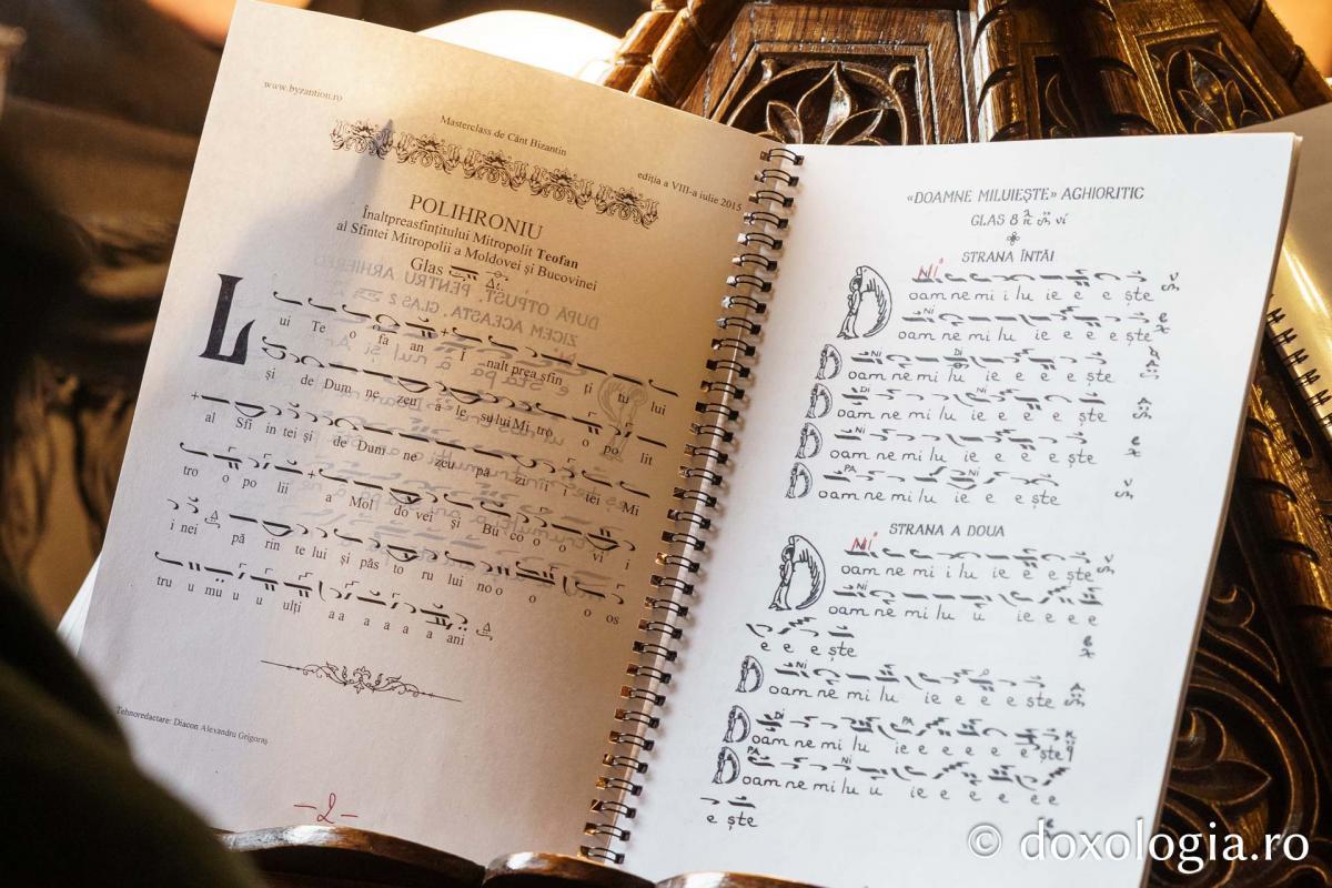 La slujba privegherii a slujit un sobor de preoți și diaconi sub protia părintelui arhimandrit Elisei Nedescu, starețul Mănăstirii „Sfinții Trei Ierarhi” din Iași, iar răspunsurile liturgice au fost date de Corul preoțesc „Apostolii” (în strana dreaptă) și, respectiv, de corul mănăstirii Copou (în strana stângă).